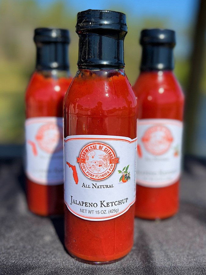 16oz. – Ingredients: Tomato puree (tomato paste and water), sugar, vinegar, jalapeno peppers, salt, onion powder, spices.